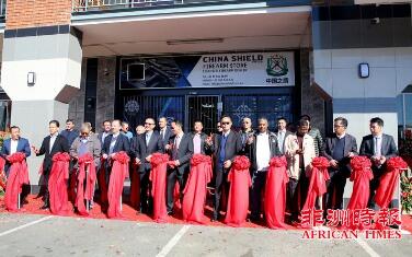 6月16日,南非首家华人枪店中国之盾和南非之盾室内射击靶场在约翰内斯堡隆重开业,中国驻约翰内斯堡总领馆矫磊领事,
